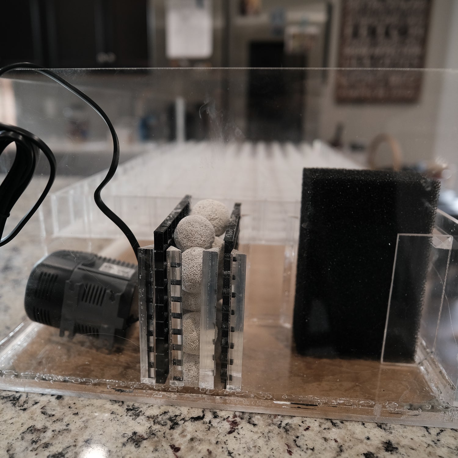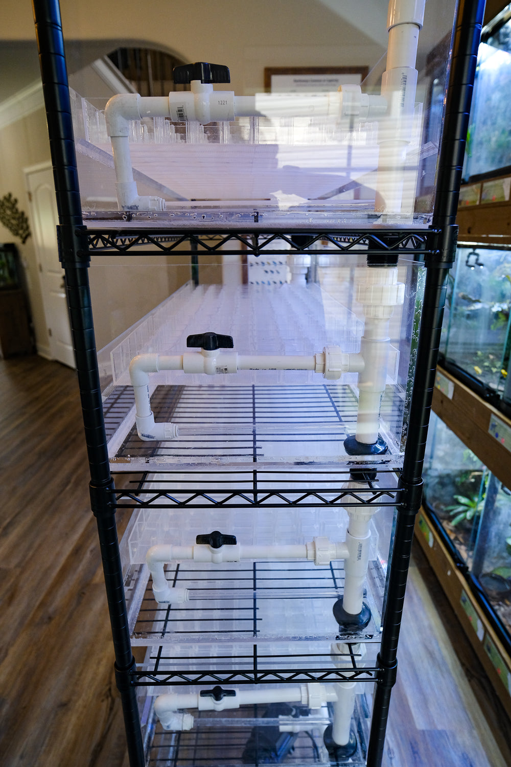 provide the ideal set-up to raise tadpoles in captivity. The individual cubicles prevent cannibalism that is prevalent in Ranitomeya and Dendrobates, while the communal water body provides water-quality stability and allows for the complete filtration of the water.