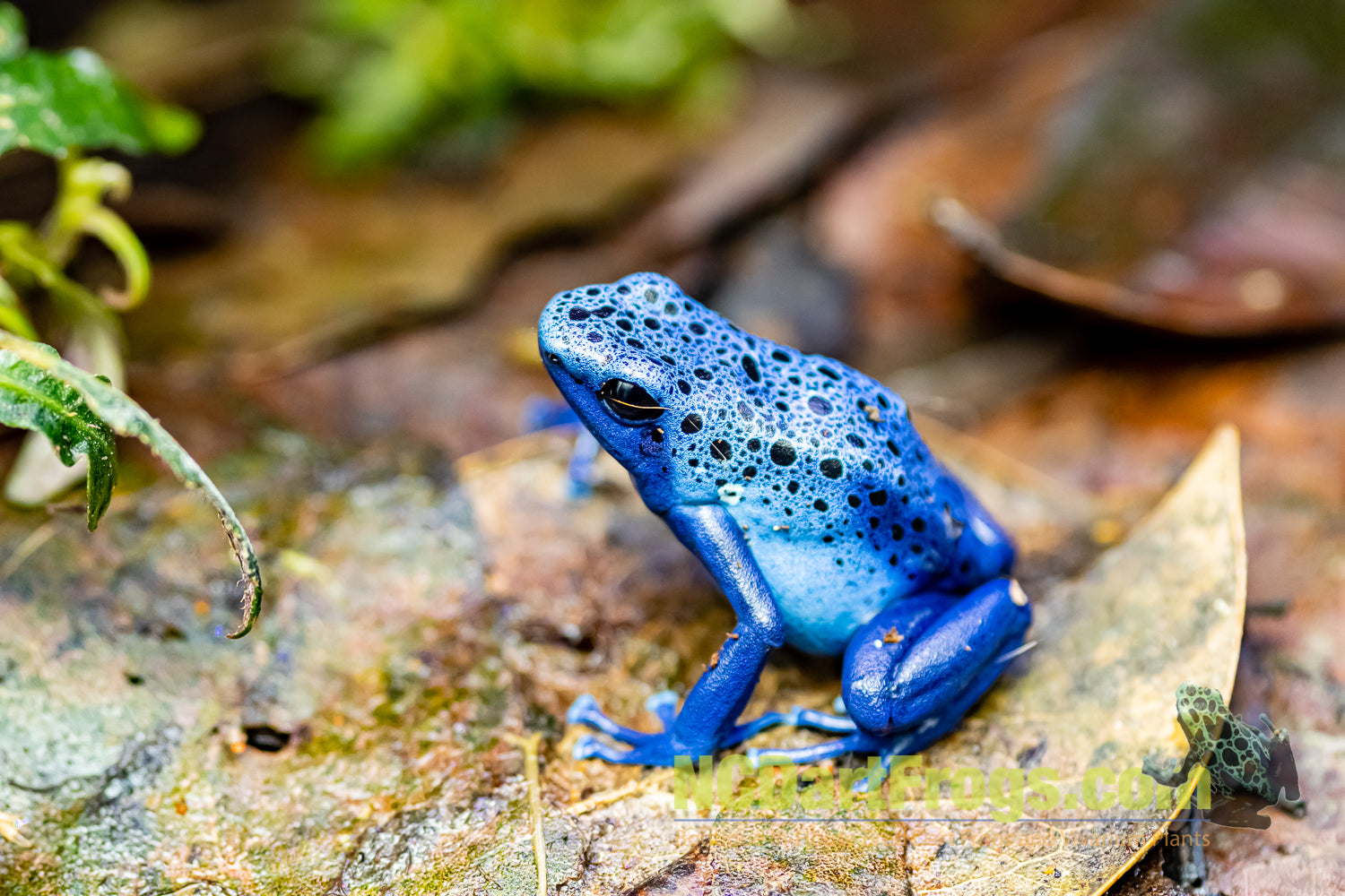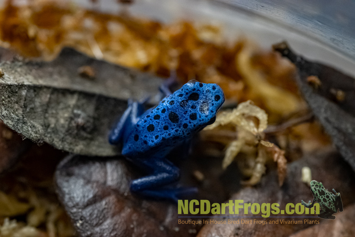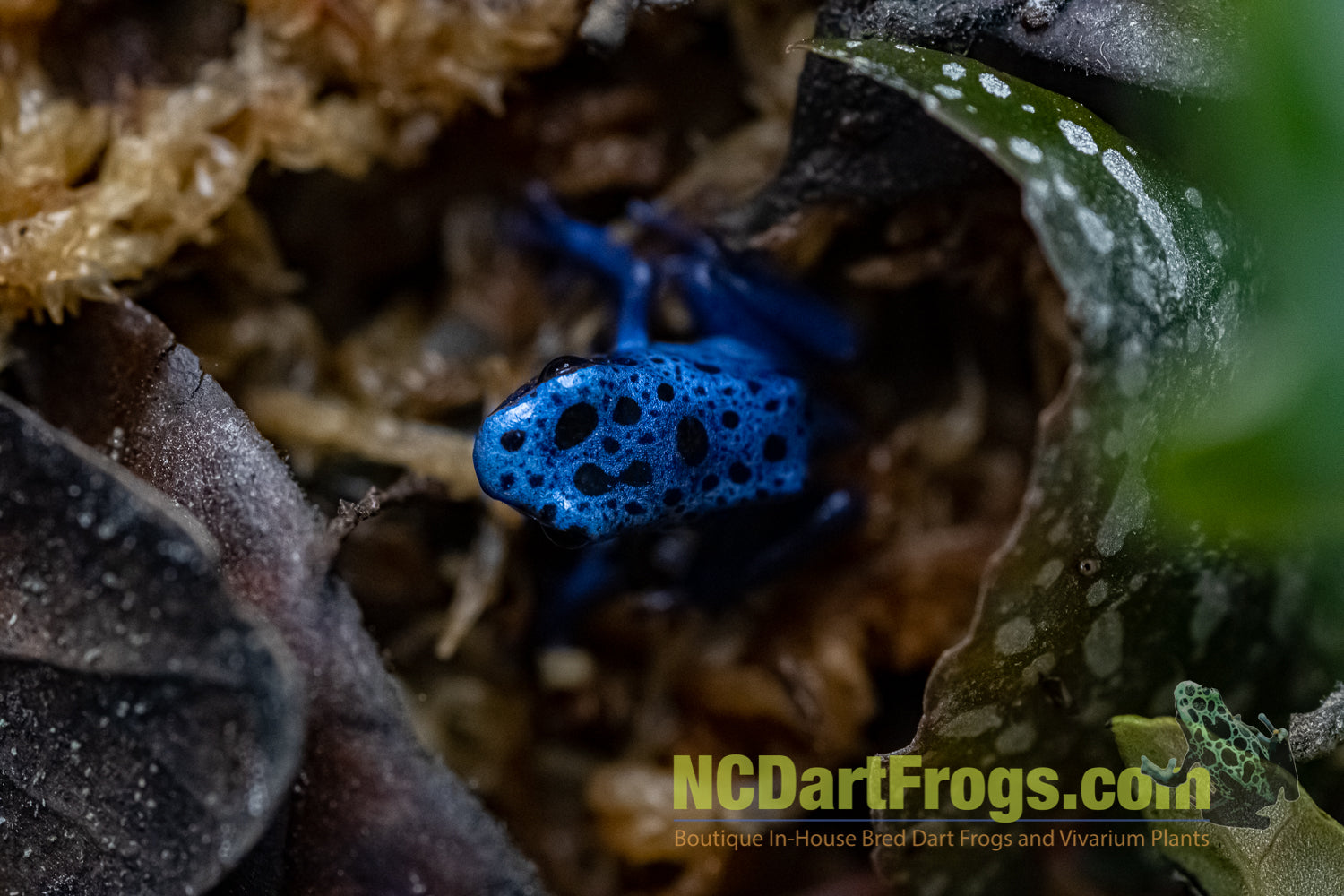 Dendrobates tinctorius “Azureus” is a striking blue dart frog that is a staple in the Dart Frog Hobby. Azureus are a medium sized frog reaching a length of around 50mm.