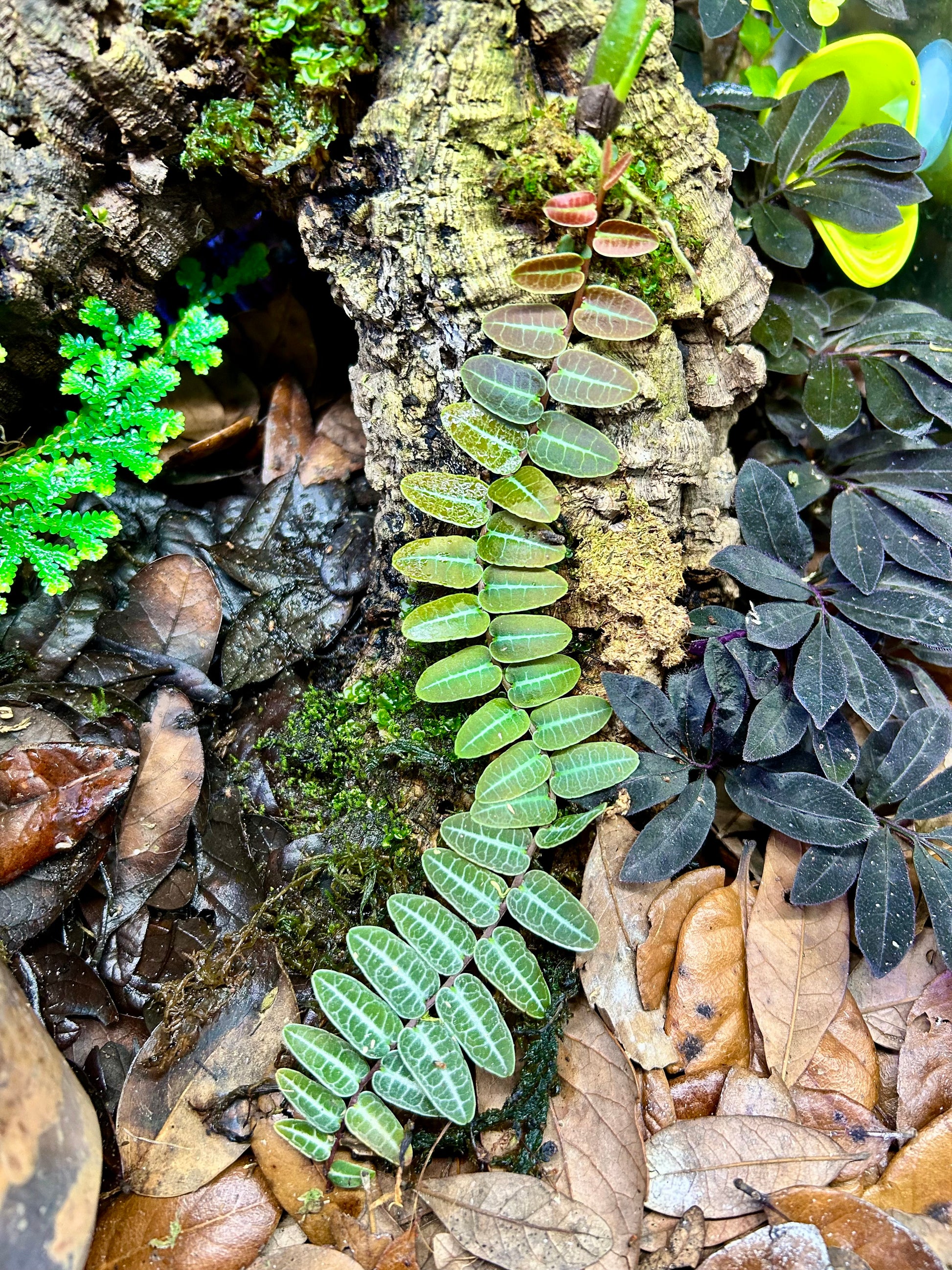 This vining plant has a deep purple color and ornate leaves that adds to the tropical feel of a vivarium. Easy to grow and propagate via cuttings. Ships as a rooted plant.